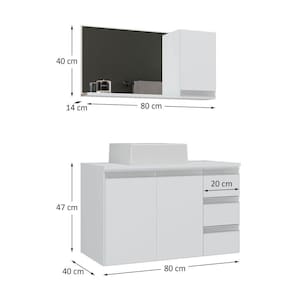 - Medida da Espelheira: 80cm x 40cm x 14cm (comp. / largura/ prof)