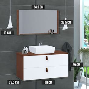 Itens Inclusos: Gabinete, pia e espelheira (com espelho)