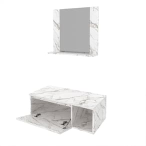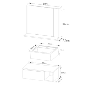 O Kit para Banheiro é a escolha ideal para transformar o seu espaço em um ambiente elegante e organizado. Com um design atual, ele oferece não apenas beleza, mas também funcionalidade, contribuindo para um banheiro agradável e útil. Produzido com materiais de alta qualidade, o kit garante durabilidade e resistência, criando um ambiente harmonioso e agradável para o seu dia a dia. CARACTERÍSTICAS TÉCNICAS: - Produzida em MDP de 15 mm - Acabamento UV na cor Mármore Branco - Acompanha Espelho - Cuba em Mármore Sintético - Porta Basculante com Dobradiça e Articulador - Balcão Suspenso - Puxador tipo Cava *Kit Composto por Gabinete Suspenso (3601), Espelheira (3610) e Cuba (3630) INFORMAÇÕES TÉCNICAS: 3601: Alt. 26,5 x Larg. 80 x Prof. 38,7 cm P. 10,8 kg 3610: Alt. 54 cm x Larg. 60 cm x Prof. 15,6 cm x P. 6,35 3630: Alt. 11,5 x Larg. 35 x Prof. 34 cm P. 5,5 kg INFORMAÇÕES ADICIONAIS: - ATENÇÃO: Não trabalhamos e não nos responsabilizamos pela montagem do móvel. Antes da montagem conferir se o produto está de acordo com o que comprou, produto montado e danificado pela montagem não será aceito troca. Montagem e instalação por conta do comprador. - As imagens ambientadas são meramente ilustrativas e podem apresentar itens que não compõe o produto. As cores do produto podem variar de acordo com o monitor, a iluminação do ambiente ou sua percepção visual. - Limpeza: Deve ser feita com pano macio e seco ou levemente. Não devem ser utilizados abrasivos como palha de aço e objetos cortantes. Garantia para defeitos de fabricação conforme Código de Defesa do Consumidor.