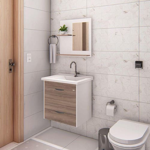 Possui uma composição integrada entre os padrões texturizados e madeirados, puxadores tipo alça e espelheiro que completam esse conjunto, tornando-o sofisticado e aconchegante, sem deixar de lado a praticidade e facilidade de montagem, que é característica dos produtos A. J. Rorato. Acabamento da Cuba: Gel Acabamento da Gaveta: BP Acabamento da Porta: BP Acabamento da Prateleira: BP Acompanha Cuba: Sim Acompanha Tampo: Sim Ambiente Principal: Banheiro Complexidade da Montagem: Baixa: pode ser montado por uma pessoa sozinha Cor: Nogal Sevilha Cor da Cuba: Gelo Cor do Produto: Nogal Sevilha Cor Interna: Branco Escala de Brilho: Semi-Fosco Escala de Brilho da Gaveta: Semi-Fosco Escala de Brilho da Porta: Semi-Fosco Escala de Brilho da Prateleira: Semi-Brilho Espessura do Espelho: 3 mm Formato do Espelho: Retangular Furação para Cuba e Torneira: Sim Gaveta com Chave: Não Itens Inclusos: 1 Kit Armário, 1 Espelheira, 1 Pia e Manual de Instalação Linha ou Coleção: Roma Manual de Especificação Técnica: https://cdn2.madeiramadeira.com.br/atributo/a-j-rorato-moveis/1371397-treviso-tecnica.pdf Manual de Montagem e Instalação: https://cdn2.madeiramadeira.com.br/atributo/a-j-rorato-moveis/1371396-roma-instruCAo.pdf Material da Cuba: Mármore Sintético Material da Gaveta: MDF/MDP Material da Porta: MDF/MDP Material da Prateleira: MDF/MDP Material do Puxador da Gaveta: Plástico Material do Puxador da Porta: Plástico Material do Tampo: Mármore Sintético Material Principal: MDF/MDP Medida da Cuba (C x L x P): 58cmX34,5cmX14cm Medida da Espelheira (A x L x P): 53,5cmX55,4cm Medida do Gabinete (A x L x P): 53,5cmX55,4cmX33,5cm Necessita Montagem: Sim Origem do Produto: Nacional Peso: 19,738 kg Peso Máximo por Gaveta: 0,5 kg Peso Máximo por Prateleira: 0,2 kg Possui Espelheira: Sim Possui Gabinete: Sim Possui Gavetas: 01 Possui iluminação: Não Possui Pés: Suspenso Possui Portas: 01 Possui Rodízio: Não Recomendações de Uso, Manutenção e Limpeza: Nunca utilize esponja tipo bombril para a limpeza de seu armário e pia e nem produtos abrasivos, para limpeza utilize uma flanela limpa e seca. A exposição a luz solar pode modificar a cor único do produto. Sistema de Montagem: Parafuso Tamanho do Espelho (A x L): 53,5cmX55,4cm Tipo de Corrediça da Gaveta: Metálica Telescópica Tipo de Dobradiça/Corrediça da Porta: Metálica Tipo de Gabinete: Gabinete Suspenso Tipo de Porta: Basculante Tipo de Puxador da Gaveta: Externo Tipo de Puxador da Porta: Externo
