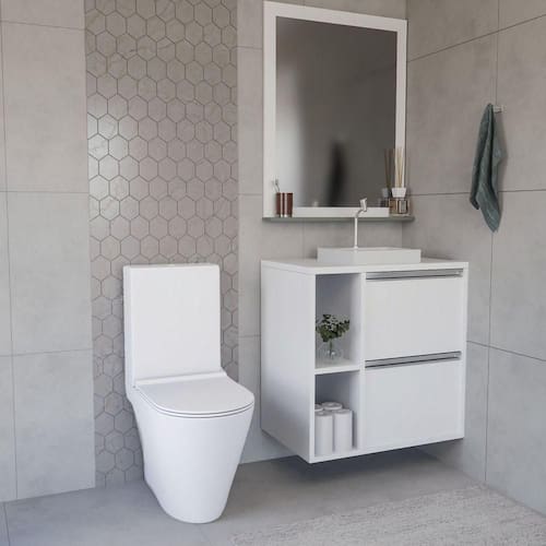 Conjunto Gabinete E Espelhiera Plena Compact 100cm Branco Conjunto Gabinete e Espelhiera Plena Compact 100cm Branco - Sofisticação também cabe em espaços menores! O Plena Compact 100 traz toda a qualidade premium da linha Plena em um formato mais compacto. O conjunto de sobrepor inclui um balcão elegante (70cm alt x 100cm larg x 45cm prof) e uma espelheira charmosa (90cm alt x 100cm larg, profundidade N/A). Ideal para quem não abre mão do luxo e da qualidade, mesmo com menos espaço.