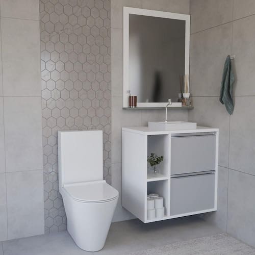 Conjunto Gabinete E Espelhiera Plena Compact 100cm Cinza Conjunto Gabinete e Espelhiera Plena Compact 100cm Cinza - Sofisticação também cabe em espaços menores! O Plena Compact 100 traz toda a qualidade premium da linha Plena em um formato mais compacto. O conjunto de sobrepor inclui um balcão elegante (70cm alt x 100cm larg x 45cm prof) e uma espelheira charmosa (90cm alt x 100cm larg, profundidade N/A). Ideal para quem não abre mão do luxo e da qualidade, mesmo com menos espaço.