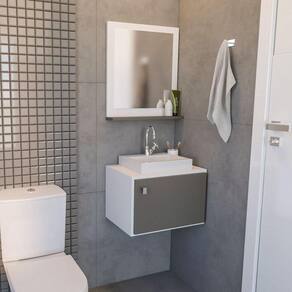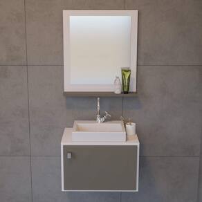 Conjunto Gabinete E Espelho Suspenso Meu Canto 60 - Modelo 2 Chumbo Conjunto Gabinete e Espelho Suspenso Meu Canto 60 - Modelo 2 Chumbo - Crie um banheiro que é a sua cara com o Meu Canto Modelo 2! Esse conjunto suspenso tem um design charmoso e acolhedor. O balcão (40cm alt x 60cm larg x 32cm prof) é prático e a espelheira (50cm alt x 60cm larg x 8cm prof) adiciona funcionalidade com estilo. Ideal para quem busca um visual leve e um espaço mais pessoal. Dê um toque de aconchego ao seu banheiro!