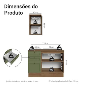 - 31cm de profundidade no aéreo e 52cm no balcão