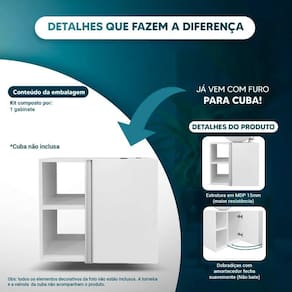 Obs: todos os objetos decorativos das fotos não estão inclusos (por exemplo: cuba, torneira, válvula universal para lavatório, sifão, itens de higiene pessoal, etc). Ean: 7899983694091