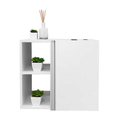 Possui dois nichos e espaço interno para guardar objetos e decorações.