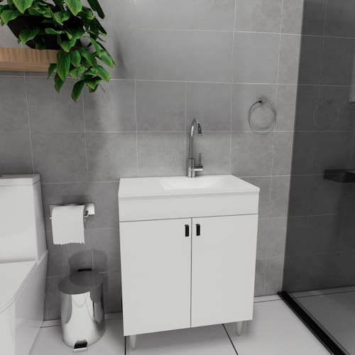 Renove seu banheiro com este gabinete com pés e cuba, que une design moderno, praticidade e excelente custo-benefício. Ideal para quem busca organização e estilo em um só produto.