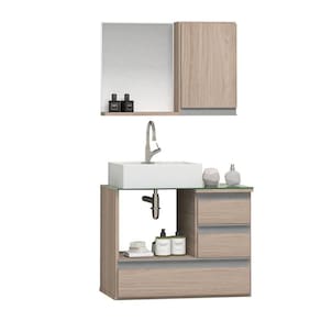 Acompanha : Gabinete + Cuba Elevada + Espelheira com espelho + Tampo Vidro incolor