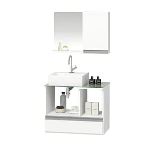 Acompanha : Gabinete + Cuba Elevada + Espelheira com espelho + Tampo Vidro incolor