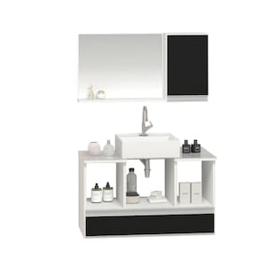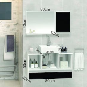 Modelo moderno, com puxador de alumínio tipo perfil. (igual móveis sob medida)Medidas gabinete: 80cm x 40cm x 50 (comp. / prof. / altura)Medidas da pia sobrepor : 34x34x11Medidas Espelheira : 80cm x 40cm x 14cm (comp. / altura / prof)Medida Tampo Vidro: 80cm x 40cm com 6mm espessura (vidro temperado)