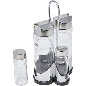 Conjunto Galheteiro Com Suporte 4 Peças Euro Incolor / Inox Conjunto galheteiro com suporte 05 peças- Euro