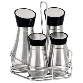 Conjunto Galheteiro Tramontina Em Vidro e Aço Inox Com Suporte Em Aço Com 4 Dispensers 61119200
