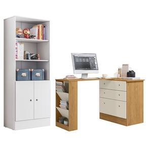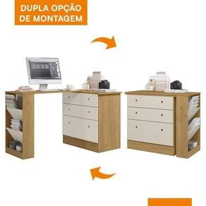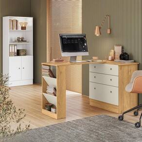 Conjunto Gamer Armário 2 Portas E Mesa Giratória Branco/freijó/off White Fosco - Qmovi Branco/freijó/off White Fosco