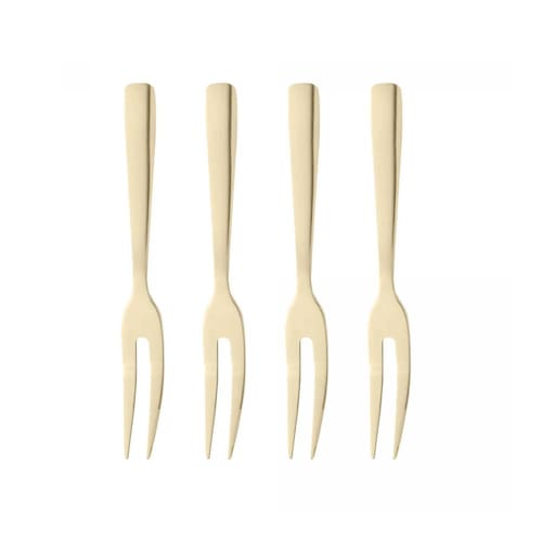 Estes garfos apresentam um acabamento dourado que adiciona um brilho luxuoso à sua mesa. Com um design sofisticado, eles elevam a apresentação dos seus aperitivos, são fabricadas em aço inox altamente durável e resistente, preservando a beleza, a higiene e a durabilidade do material.