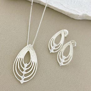 Conjunto Gota com detalhes de Zircônia em Prata 925