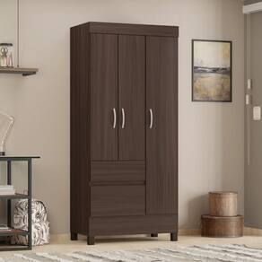 O guarda roupa é feito em 1 gavetas com corrediça telescópicas, 3 portas, 1 cabideiros, 2 prateleiras e 3 nichos.