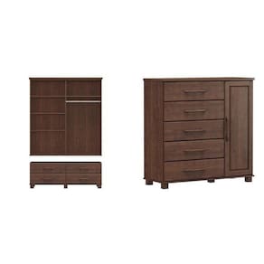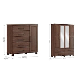 Este conjunto é composto por dois móveis belíssimos da Linha Ouro, produzidos 100% em madeira maciça de pinus, o acabamento é em verniz PU/UV na cor Café. O guarda roupa oferece amplo espaço interno, com gavetas equipadas com corrediças telescópicas e portas com sistema de amortecimento, além de espelho aplicado para maior praticidade. Já a cômoda complementa o conjunto com design clássico, puxadores em madeira e compartimentos bem distribuídos para organização eficiente. Possui Portas: Sim Suporta Até (kg): 30 kg Possui Rodízio: Não Altura do Conjunto: 220 cm Ambiente: null Ambiente Principal: Quarto Cor: Café Informação Complementar: 1x Cômoda 5 Gavetas 1 Porta 100% Madeira Maciça Linha Ouro Café Largura: 125 cm Altura: 124 cm Peso: 47,2 kg Profundidade: 49 cm Necessita Montagem: Sim