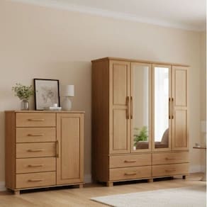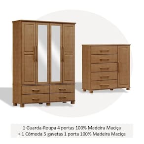 1x Guarda-Roupa Bipartido 4 Portas 4 Gavetas 100% Madeira Maciça Linha Ouro Freijó Largura: 167,6 cm Altura: 220 cm Peso: 104 kg Profundidade: 55,5 cm Necessita Montagem: Sim