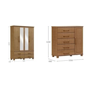 Este conjunto é composto por dois móveis belíssimos da Linha Ouro, produzidos 100% em madeira maciça de pinus, o acabamento é em verniz PU/UV na cor Freijó. O guarda roupa oferece amplo espaço interno, com gavetas equipadas com corrediças telescópicas e portas com sistema de amortecimento, além de espelho aplicado para maior praticidade. Já a cômoda complementa o conjunto com design clássico, puxadores em madeira e compartimentos bem distribuídos para organização eficiente. Possui Portas: Sim Suporta Até (kg): 30 kg Possui Rodízio: Não Altura do Conjunto: 220 cm Ambiente: null Ambiente Principal: Quarto Cor: Freijó Informação Complementar: 1x Cômoda 5 Gavetas 1 Porta 100% Madeira Maciça Linha Ouro Freijó Largura: 125 cm Altura: 124 cm Peso: 47,2 kg Profundidade: 49 cm Necessita Montagem: Sim