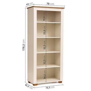 1x Estante para Livros 4 Prateleiras Ananda Off White/Mel Largura: 78 cm Altura: 178,2 cm Peso: 38,3 kg Profundidade: 41,2 cm Necessita Montagem: Sim