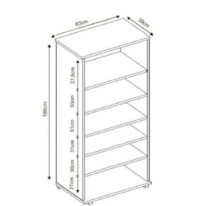 1x Estante para Livros 5 Prateleiras Office Preto Texturizado