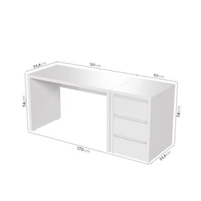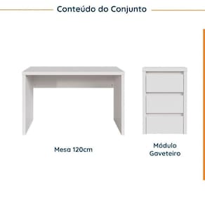 Com um design minimalista e elegante, o Conjunto Home Office Ficus foi projetada para permitir que você crie diferentes configurações para atender às suas necessidades de espaço e organização combinando este móvel com outros da linha Ficus. Seja para um escritório em casa ou para uma empresa, esta peça irá adicionar um toque de sofisticação e funcionalidade ao seu ambiente de trabalho. Esta linha foi desenvolvida com uma técnica especial que consiste em unir várias camadas de MDF de alta qualidade, formando um painel leve porém resistente e com aparência robusta de 37mm de espessura, conhecido como tamburato. O acabamento das chapas é em BP com fitas de borda em PVC que conferem ainda mais durabilidade e resistência à umidade para o móvel. Possui também sapatas niveladoras que possibilitam o correto ajuste do móvel em qualquer piso. Possui Portas: Não Acabamento: BP Suporta Até (kg): 35 kg Possui Rodízio: Não Altura do Conjunto: 75.6 cm Ambiente: null Ambiente Principal: Escritório Cor: Branco Informação Complementar: 1x Escrivaninha Reta Modular Ficus 1,20m BrancoLargura: 120 cmAltura: 74,1 cmPeso: 28,33 kgProfundidade: 59,8 cmNecessita Montagem: Sim1x Gaveteiro Modular 50cm Ficus BrancoLargura: 50 cmAltura: 75,6 cmPeso: 29,2 kgProfundidade: 59,8 cmNecessita Montagem: Sim