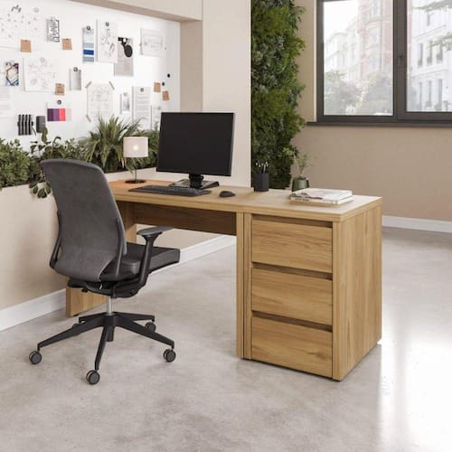 Com um design minimalista e elegante, o Conjunto Home Office Ficus foi projetada para permitir que você crie diferentes configurações para atender às suas necessidades de espaço e organização combinando este móvel com outros da linha Ficus. Seja para um escritório em casa ou para uma empresa, esta peça irá adicionar um toque de sofisticação e funcionalidade ao seu ambiente de trabalho. Esta linha foi desenvolvida com uma técnica especial que consiste em unir várias camadas de MDF de alta qualidade, formando um painel leve porém resistente e com aparência robusta de 37mm de espessura, conhecido como tamburato. O acabamento das chapas é em BP com fitas de borda em PVC que conferem ainda mais durabilidade e resistência à umidade para o móvel. Possui também sapatas niveladoras que possibilitam o correto ajuste do móvel em qualquer piso. Possui Portas: Não Acabamento: BP Suporta Até (kg): 35 kg Possui Rodízio: Não Altura do Conjunto: 75.6 cm Ambiente: null Ambiente Principal: Escritório Cor: Rovere Informação Complementar: 1x Escrivaninha Reta Modular Ficus 1,20m RovereLargura: 120 cmAltura: 74,1 cmPeso: 28,33 kgProfundidade: 59,8 cmNecessita Montagem: Sim1x Gaveteiro Modular 50cm Ficus RovereLargura: 50 cmAltura: 75,6 cmPeso: 29,2 kgProfundidade: 59,8 cmNecessita Montagem: Sim