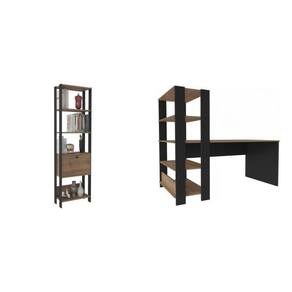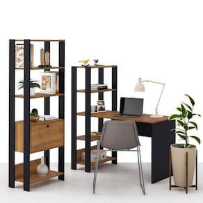Destaque em quarto, sala ou home office, a Escrivaninha Match e a Estante tem design industrial e detalhes sofisticados que conferem um visual contemporâneo aos ambientes. Seu amplo tampo oferece um espaço confortável para você trabalhar ou estudar de maneira produtiva e agradável. As prateleiras acopladas proporcionam a grande vantagem deste produto: você pode ter seus livros, materiais e tudo o que precisa à mão, no mesmo móvel! Assim, você tem muito mais praticidade no seu dia a dia e melhor desempenho no trabalho! Altura do Conjunto: 166 cm Ambiente: null Ambiente Principal: Escritório Cr: Pinho/Preto Informação Complementar: 1x Escrivaninha com Estante 3 Prateleiras Match Pinho/Preto Largura: 120 cm Altura: 134,5 cm Peso: 25,4 kg Profundidade: 63 cm Necessita Montagem: Sim1x Estante 4 Prateleiras 1 Nicho 1 Porta Basculante MDP Match Pinho/Preto Largura: 63 cm Altura: 166 cm Peso: 20 kg Profundidade: 32 cm Necessita Montagem: Sim Material Principal: MDP Possui Rodízio: Não Tamanho: