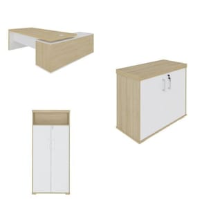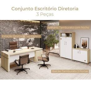 Conjunto Home Office 3 Peças 1 Mesa em L Tamburato 1 Armário Alto 1 Balcão Baixo Artany Carvalho/Branco - Marrom