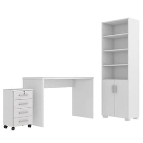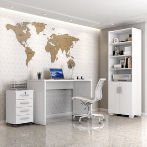 Conjunto de escrivaninha, armário e gaveteiro indicado para uso em sala, escritório, quarto, ou qualquer outro ambiente que você precise organizar e deixá-lo ainda mais elegante.