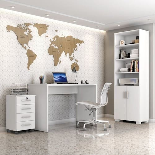 Conjunto Home Office 3 Peças com Escrivaninha Gávea, Gaveteiro e Armário Espresso Móveis Branco