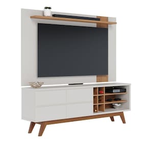 Este Conjunto é uma excelente escolha para quem quer elegância e versatilidade na sala de estar; O Home Diana, que é composto por um rack e um painel, possui um painel que permite acomodar TVs de até 70 polegadas, duas portas, uma prateleira e três nichos, perfeito para manter sua sala organizada e decorada!