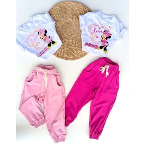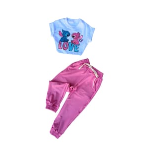 Conjunto composto por cropped com amarração nas costas e calça jogger com elástico na cintura.