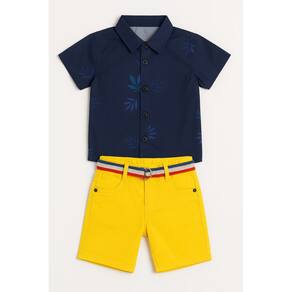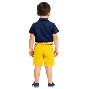 Conjunto Infantil Camisa Azul e Bermuda Amarela Azul Verão é perfeito para deixar os pequenos estilosos, fresquinhos e confortáveis nos dias quentes. A camisa azul com estampa discreta traz um toque elegante e moderno, enquanto a bermuda amarela vibrante com cinto colorido deixa o visual ainda mais alegre e fashion.