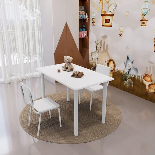 Querendo um espaço recreativo para que as crianças coloquem a imaginação pra funcionar? O Conjunto Infantil Laura é ideal para que a garotada brinque, desenhe, coma e se divirta. Confeccionado com materiais de resistência, ele garante a segurança dos pequenos, além de possuir um design simples e atrativo. Acabamento da Cadeira/Banco: Pintura Epóxi Acabamento da Mesa: Pintura Epóxi Acompanha Manual de Instalação: Sim Ambiente Principal: Quarto Infantil Cadeira/Banco estofada: Não Cadeira/Banco suporta até: 90 kg Complexidade da Montagem: Média: pode ser montado por mais de uma pessoa e/ou necessite de maior conhecimento para montagem Cor: Branco Cor da Base: Branco Cor do Produto: Branco Cor do Tampo: Branco Cor Secundária: Branco Enchimento do Encosto: MDF Escala de Brilho: Brilhante Espessura do Tampo: 18 mm Estrutura do Assento: MDF Formato do Tampo: Retangular Itens Inclusos: 1 Mesa, 2 Cadeiras e Manual de Montagem Linha ou Coleção: Laura Manual de Montagem e Instalação: https://cdn2.madeiramadeira.com.br/atributo/art-panta/1535829-instrucao-mesa-laura.pdf Material da Base da Mesa: Aço Material da Estrutura da Cadeira: Aço Material do Tampo: MDF/MDP Material Principal: Aço Material Principal das Cadeiras/Bancos: Aço Medida da Cadeira/Banco (A x L x P): 57 cm x 27,5cm x 33cm Medida da Mesa (A x L x P): 52cm x 75cm x 50cm Medida do Tampo (L x C x E): 50cm x 75cm x 18cm Mesa Dobrável: Não Mesa Extensível: Não Mesa suporta até: 20 kg Montagem Flex: Não Necessita Montagem: Sim Origem do Produto: Nacional Peso da Cadeira/Banco: 2,91 kg Peso da Mesa: 6,499 kg Possui Apoio para Braços: Não Possui Apoio Para os Pés: Não Possui Prateleiras: Não Possui Rodízio: Não Possui Suporte Giratório: Não Possui Vidro: Não Quantidade de Cadeiras: 2 Recomendações de Uso, Manutenção e Limpeza: Pano levemente umedecido com água, seguido de pano seco, não utilizar produtos químicos ou abrasivos. Sistema de Montagem: Parafusos Tipo de Assento: Fixo Tipo de Encosto: Fixo Ean: 7898644076979