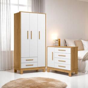 Esse conjunto de Cômoda e Guarda Roupa é perfeito para você que procura praticidade e segurança na hora de montar o quarto do seu bebê