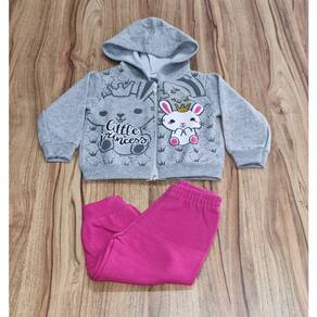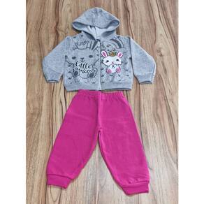 Conjunto Infantil Feminino Inverno Com Capuz Coelho Cinza P/M.