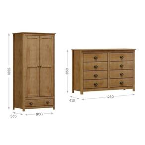 O Conjunto Topázio da Finestra Móveis é composto pelo Guarda-Roupa 2 Portas 1 Gaveta e a Cômoda 8 Gavetas, ambos produzidos em madeira maciça de pinus com acabamento em verniz PU/UV acetinado. O guarda-roupa conta com prateleiras, cabideiro metálico e gaveta com corrediças telescópicas, oferecendo organização prática para roupas e acessórios. Já a cômoda, com oito gavetas espaçosas e puxadores metálicos, é ideal para otimizar o armazenamento com elegância. Um conjunto que une funcionalidade, durabilidade e design sofisticado, perfeito para deixar o quarto aconchegante e bem organizado. Suporta Até (kg): 70 kg Possui Rodízio: Não Altura do Conjunto: 185.5 cm Ambiente: null Ambiente Principal: Quarto Infantil Cor: Freijó Informação Complementar: 1x Cômoda 8 Gavetas Topázio 100% Madeira Maciça para Quarto Freijó Largura: 125 cm Altura: 85 cm Peso: 35 kg Profundidade: 41 cm Necessita Montagem: Sim
