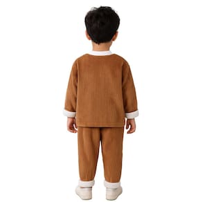 O Conjunto Infantil Inverno Marrom Aconchegante é feito em tecido macio e reforçado, ideal para os dias frios. Composto por blusa de manga longa e calça com cintura elástica, proporciona conforto, estilo e liberdade de movimento. Possui detalhes nos punhos e gola que dão um charme extra. Indicado para crianças de 1 a 7 anos.