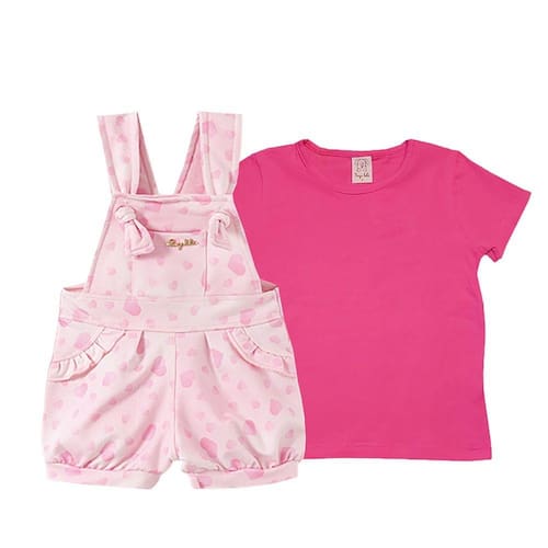 Jardineira e Camiseta manga curta Pingo Lelê é ideal para os passeios da sua princesinha. Toda mãe quer praticidade, design e conforto para sua filha. A camiseta é confeccionada em suedine com gola redonda. A jardineira confeccionada em malha confort possui bolsinho frontal, estampa de coraçõezinhos e plaquinha da marca em dourado.