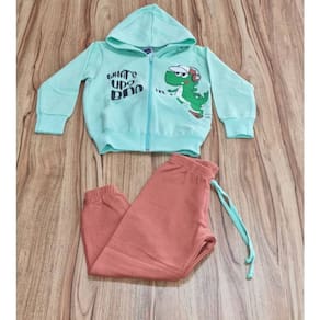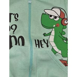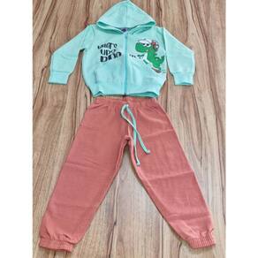 Com capuz e estampa de dinossauro, o conjunto na cor verde é ideal para meninos cheios de energia e personalidade.