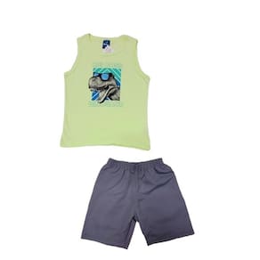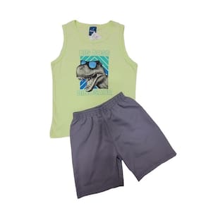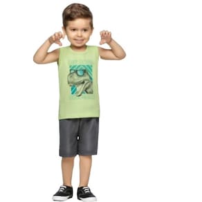 Confeccionado em tecido algodão composto por regata e shorts. Possui estampa frontal.
