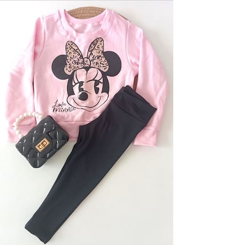Chegou o look que vai deixar qualquer princesa encantada!O Conjunto Minnie – O é aquele combo de conforto + fofura que não tem erro!Blusa em moletom leve e estilosa com legging super confortável pra brincar, passear ou arrasar por aí com muito estilo!