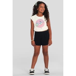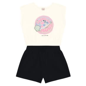 Deixe sua pequena cheia de estilo com o conjunto infantil da Brandili. A blusa cropped regata em meia malha possui gola redonda e uma estampa tropical em puff, trazendo textura e diversão ao look. O shorts em moletinho com cós elástico garante conforto e praticidade para o dia a dia. Essa combinação moderna e versátil é perfeita para as pequenas arrasarem em qualquer ocasião. Invista em um visual que une conforto e estilo!