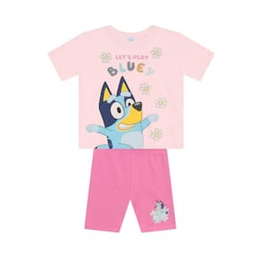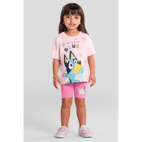 O conjunto perfeito para as meninas que amam estar na moda e confortáveis! A blusa oversized em meia malha com mangas curtas e gola redonda é super versátil e fácil de combinar. A estampa da Bluey com glitter e apliques termocolantes decorativos adiciona um toque de brilho e personalidade. Acompanha uma bermuda ciclista legging em cotton macio, com cós elástico e aplique da personagem, ela é ideal para as brincadeiras do dia a dia. Deixe sua filha ainda mais estilosa com a Bluey!