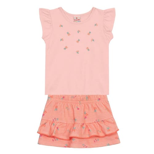 Encante-se com o conjunto infantil da Brandili, perfeito para as pequenas! Confeccionado em meia malha, a blusa apresenta uma estampa delicada de flores, com mangas curtas e gola redonda que garantem um toque de frescor. O shorts saia, também com a mesma estampa, possui cós elástico e pregas com babado, proporcionando charme e conforto. Ideal para passeios e brincadeiras, esse conjunto é a escolha perfeita para aumentar o estilo da sua bebê com praticidade e alegria!