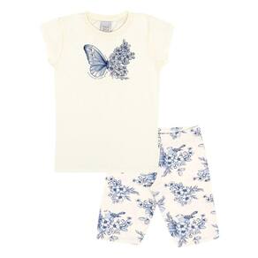 Look ideal para brincar, pular e aproveitar o dia quente e ensolarado! Conjunto charmoso e cheio de estilo para as amantes de borboletas e flores, composto por blusa meia malha na cor off white com estampa de borboleta com flores em strass e bermuda ciclista em cotton leve com estampa digital azul de broboleta com flores. Sua fashionista irá adorar!