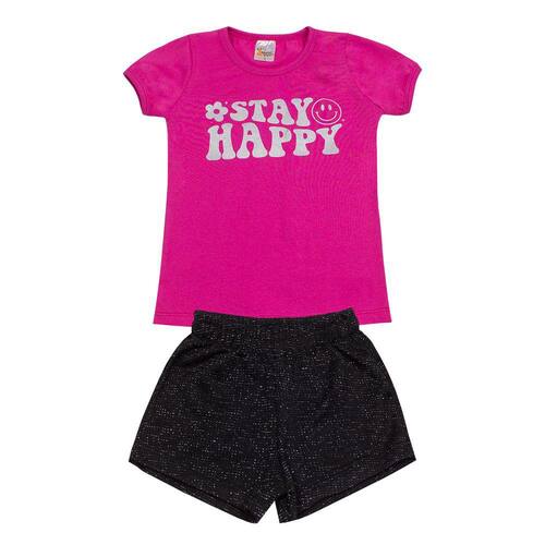 Conjunto Infantil Menina Stay Happy Roupa Menina Verão - Pink - 4
