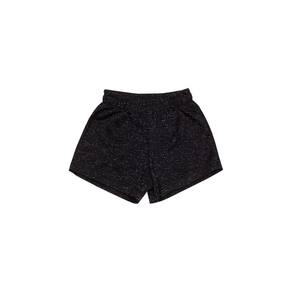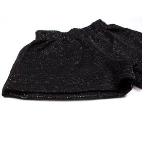 O conjunto inclui shorts confeccionado em moletinho com fio Lurex prateado ou dourado conforme a cor escolhida dependendo das preferências e do estilo da criança. Os shorts possuem cintura elástica para facilitar a colocação e são confeccionados em tecido leve e respirável.