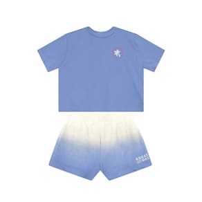 Deixe sua pequena cheia de estilo com o conjunto infantil da Brandili. A blusa cropped em meia malha tem gola redonda, mangas curtas e um divertido aplique termocolante, além de uma estampa tropical em puff nas costas. O shorts em moletinho com efeito degradê e cós elástico proporciona conforto e liberdade para brincar. Ideal para dias quentes, esse look é perfeito para renovar o guarda-roupa das meninas com charme e personalidade.